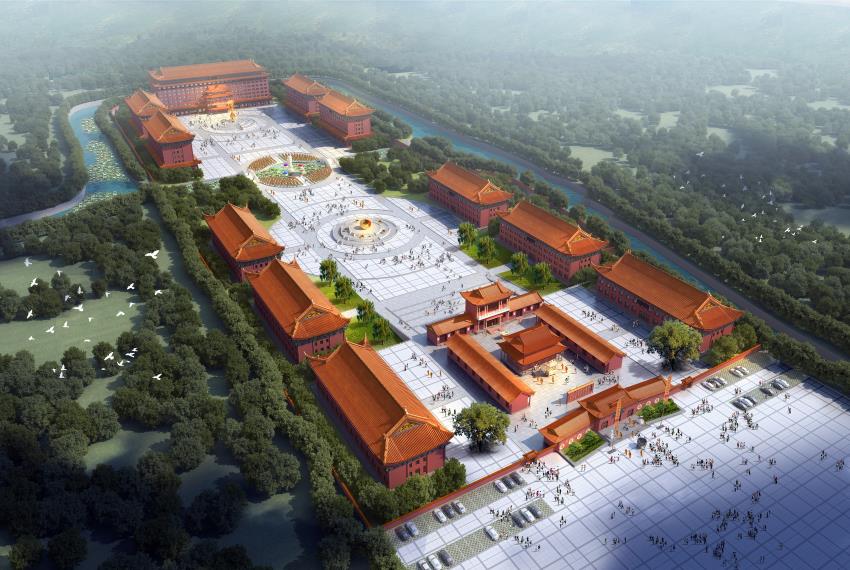 項目簡介:項目位于北戴河新區(qū)大蒲河村, 占地面積約150畝地,原有寺廟建筑面積1400㎡,新規(guī)劃建筑面積約70338㎡。整體規(guī)劃以 “衣缽相傳”、“達摩祖師一葦過江” 的佛教歷史典故和佛教法器“金剛杵”為軸線序列展開,建筑布局遵循佛教“空”的哲學(xué)思想,整體院落空間恢宏曠達,同時滿足寺廟佛事與法會的日常需。