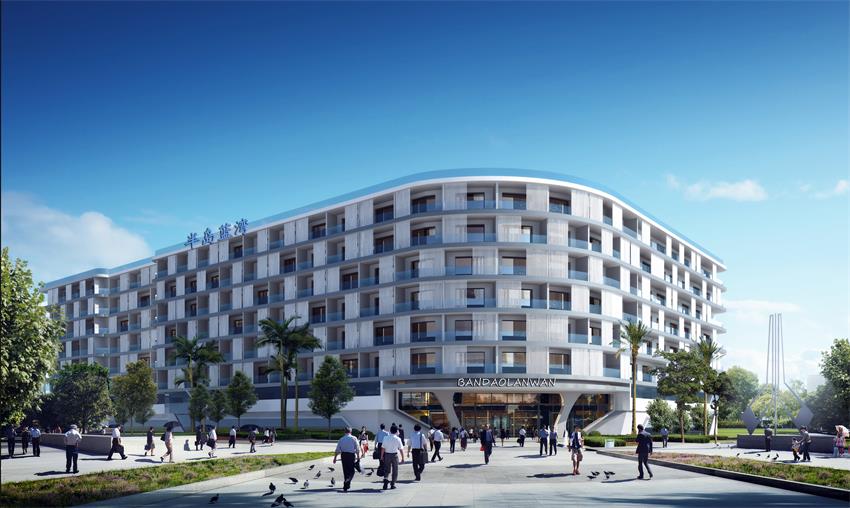 項目簡介:項目位于秦皇島市北戴河區(qū), 占地面積約10畝地,建筑面積約20484㎡,客房數(shù)量為210個。建筑通過金屬條板、防護玻璃和混凝土板的搭配打造了有序列感的立面,制造了輕盈、愉快的海邊度假酒店建筑氣氛,主入口的細部處理和內(nèi)部空間的效果透射增添了建筑的神秘感,給度假的客戶帶來一種期盼和享受。為了滿足建筑密度,建筑把一半的基底部分架空與地面作為停車綠化空間。